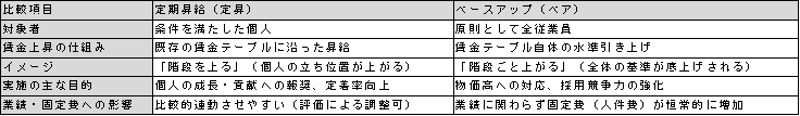 《【比較表】定昇とベアの違い》